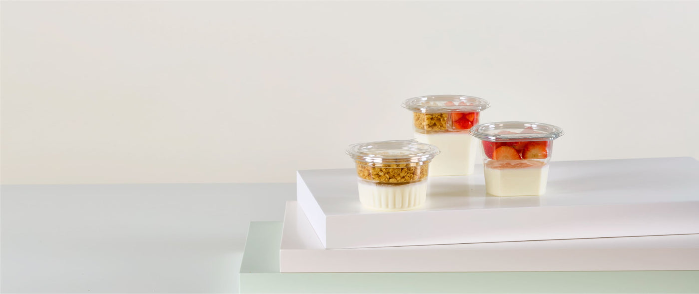 Delight customers with simple and easy-to-transport packaging for your yogurt parfait and dessert parfait cups. The unique, flat-sided design makes labeling seamless, and our wide selection of container options -